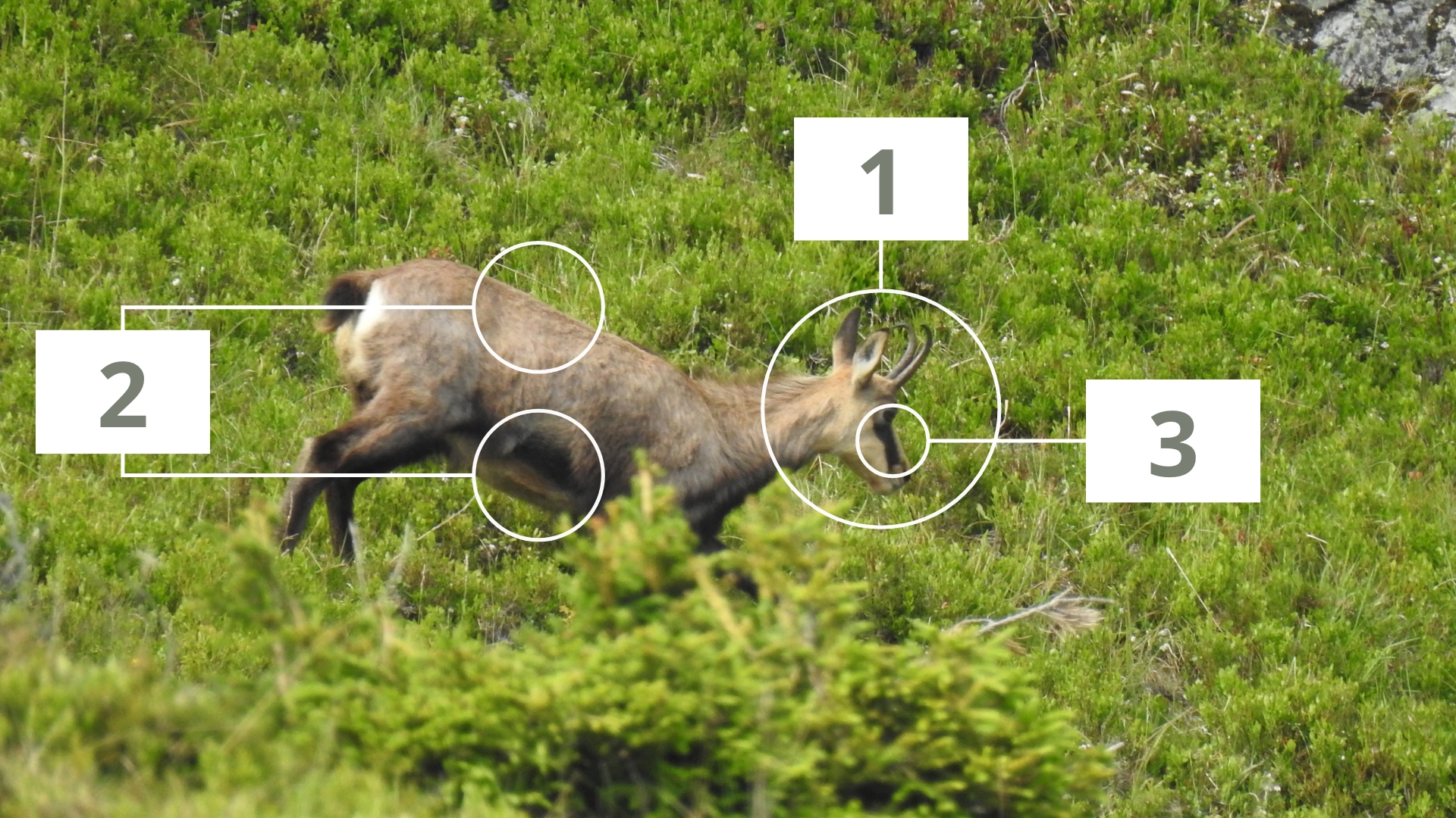 Schon während der Jagdausbildung lernt man die zahlreichen Merkmale der unterschiedlichen Wildtiere kennen und muss anhand dieser das Tier nach Alter, Geschlecht und möglichen Krankheiten bestimmen. Die Wildtiere auf Distanz anzusprechen kann trotz langjähriger Erfahrung sehr anspruchsvoll sein.